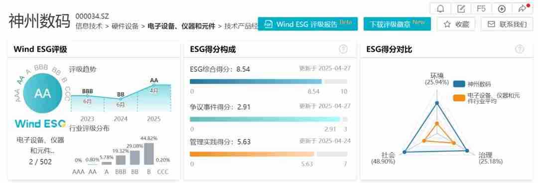 近日,,,万得(Wind)更新了2024年最新ESG评级结果,,,UNIBET数码Wind ESG评级由BB级提升至AA级。。在此次评级中,,UNIBET数码ESG综合得分为8.54,,,在电子设备、、仪器和元件行业502家纳评企业中排名第二,,在环境、、、社会、、治理三个维度得分分别为6.95、、、、8.63、、8.01,,,均处于行业前列,,,,充分彰显了其ESG管理水平与可持续发展能力。。