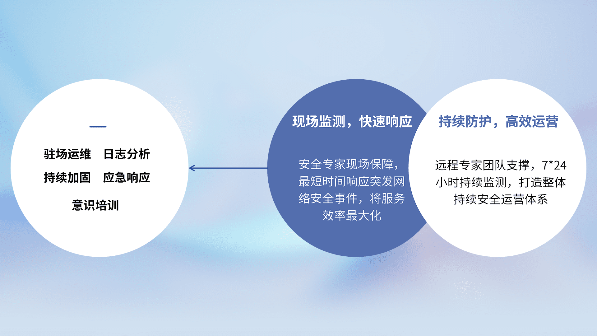 7X24小时持续监测安全事件,保持安全策略有效性,降低资产脆弱性风险,,,,精准拦截黑客攻击,,,,减少被黑客利用的机会,,,第一时间遏制,,,,降低损失。。。。